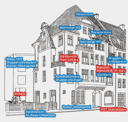 Der Altbau wurde 1907 von dem Guttempler- Orden auf einem von der Stadt Kiel günstig zur Verfügung gestellten Grundstück mit zwei großen Versammlungsräumen im Erdgeschoss erbaut. Ein Saal für bis zu 400 Personen wurde im 2. Weltkrieg zerstört, es folgte 1974 ein Anbau für das Sozialtherapeutische Übergangswohnheim. Mittlerweile wird das gesamte Haus als besondere Wohnform genutzt.
