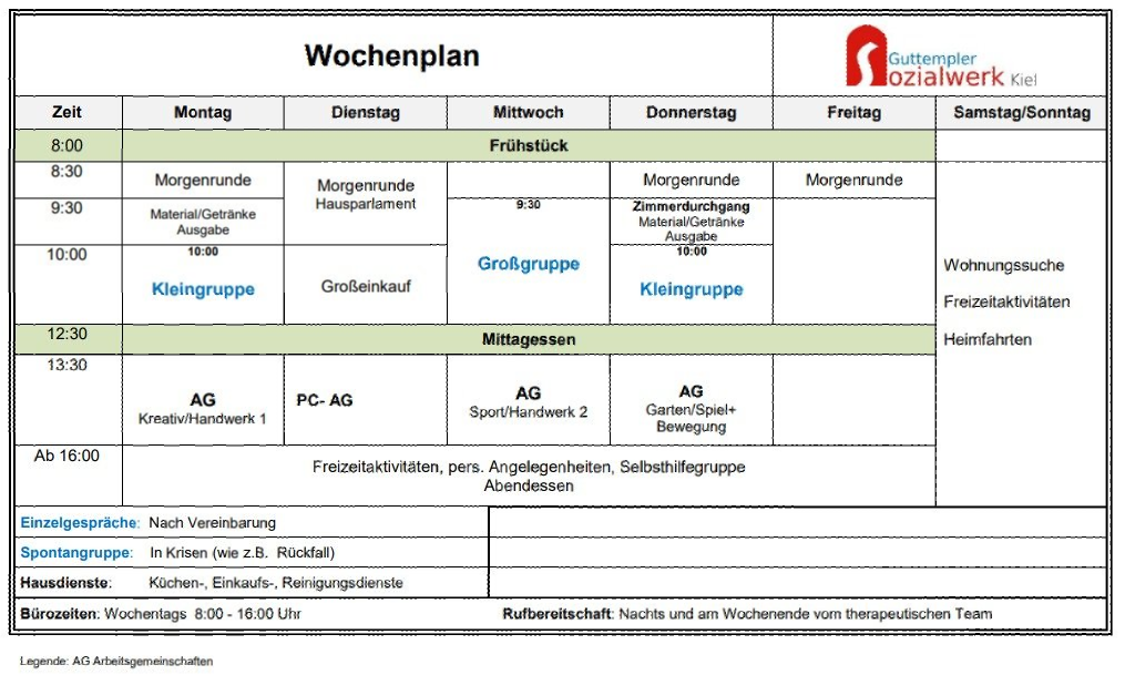 In der Morgenrunde und dem Hausparlament wird Organisatorisches besprochen. Zudem werden wöchentlich zwei AGs für den Nachmittag ausgewählt.